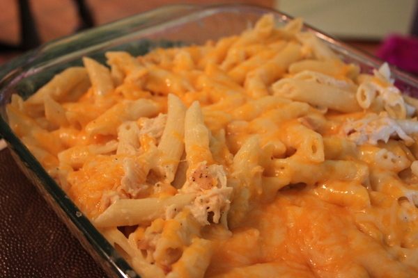 I was a brave soul. I found a recipe for this Cheesy Chicken Pasta. I’d never eaten it before, but it sounded so good, I decided to make it for a friend who had just had her baby. I made a double batch. One for her family and one for ours. I’m just hoping her family liked it, because everyone but one person in our family LOVED it. The one who didn’t like it complained about the melted cheese. Sometimes she loves melted cheese, other times, she doesn’t. I’m never quite sure when it will turn her off….or what exactly she doesn’t like about melted cheese! I happen to love it a little TOO much!